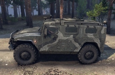 Машина для Spin Tires. Мод ГАЗ-2975 Тигр заменяет уаз, а звук использует свой. Он имеет один свой аддон - запасное колесо, и анимацию всего возможного.