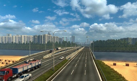 Катание по Европе конечно увлекательно, но приятно видеть и свои родные места, выполняя задания в ЕТС 2. Именно эту задачу с успехом решает карта Восточный Экспресс 8.2 для Euro Truck Simulator 2. Она затрагивает большую часть России, Республики Беларусь и Украины. Территория, которая будет подключена к обновленной игре при помощи данного мода просто колоссальная. Это тысячи километров дорог различно типа, местность, которая характерна именно данным регионам, дополнительные объекты и текстуры.