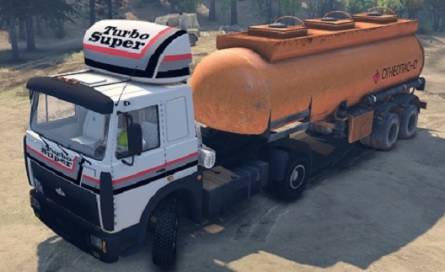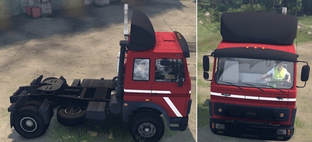Мод МАЗ 54322 имеет анимацию подвески и кабины, ещё четыре расцветок кабины. Присутствуют несколько своих аддонов и использует некоторые стандартные, в том числе полуприцепы.