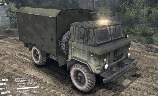 Мод ГАЗ 66 Шишига при себе имеет двенадцать аддонов и три сменных комплекта колес. У него анимированная подвеска, брызговики и карданы, гидравлика, борта и тент. Открываются двери и откидывается кабина. Проходимость высокая. Груз работает только на последних версиях игры, можно возить короткие бревна и камни.
