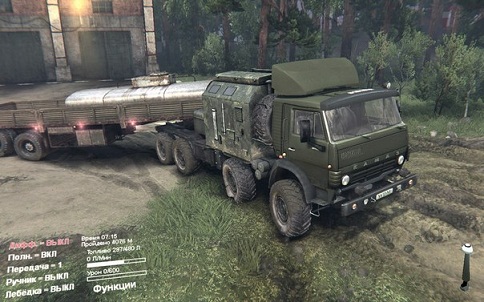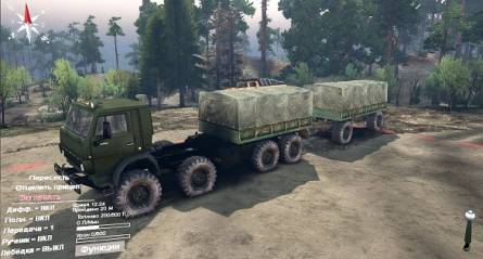 Мод КрАЗ 6322 имеет звуки переключения. Стандартные, и пару своих аддонов. У него анимированная подвеска и всё что нужно. Из аддонов есть кузов-самосвал и сортиментовоз, кран и багажник, дополнительные канистры и фары. Ещё грузы из кирпичей и досок.