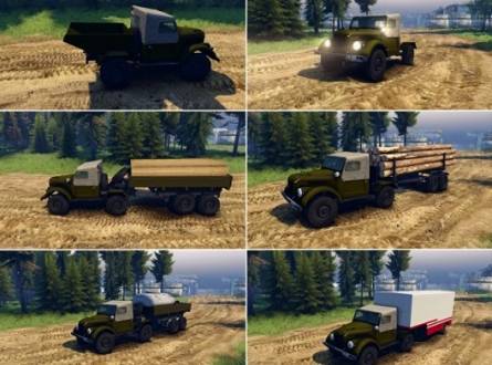 Мод КрАЗ 214 имеет звуки переключения. Стандартные, и пару своих аддонов. У него анимированная подвеска и всё что нужно. Из аддонов есть кузов-самосвал и сортиментовоз, кран и багажник, дополнительные канистры и фары. Ещё грузы из кирпичей и досок.