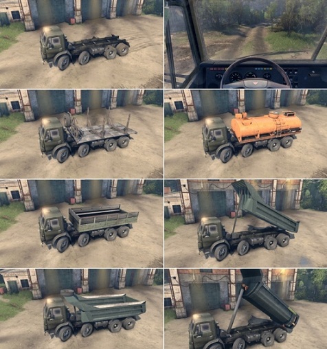Мод КрАЗ 63221 с анимированной подвеской и всем что нужно. Открываются двери и капот. Имеет один комплект сменных колёс, и один аддон - задние крылья, а так же использует стандартные. Он в игре заменяет Уаз, а звук использует свой - кразовский.