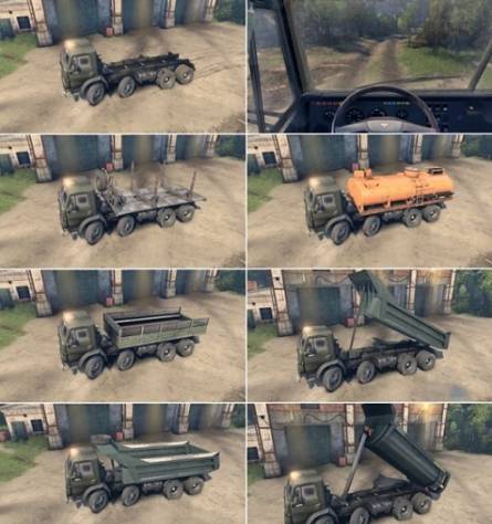 Мод КамАЗ 5511 с анимированной подвеской, карданов, рамы и аддонов. Использует пять аддонов, из них три стандартных, а так же пять комплектов сменных колёс. Проходимость приблизительно к реальной. Груз работает только на последних версиях, можно возить короткие бревна, а ещё малые и средние камни. Он в игре заменяет ЗиЛ 130, а звук использует свой - камазовский.