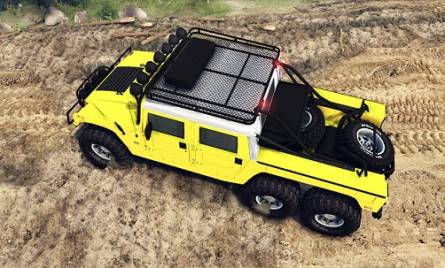 Мод Hummer H1 6x6 Raptor - машина с анимированной подвеской, проходимость довольно хорошая. Имеет два аддона - двери и каркас. Он в игре заменяет Уаз, а звук использует свой - хамерский.