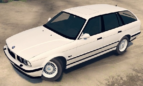 Мод BMW E34 525iX Тюнинг - машина с аддонами, их 8 и 10 комплектов сменяемых колёс. Заменяет Уаз, а звук использует свой настоящий.