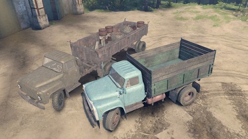 Мод ГАЗ-52 и ГАЗ-53 - грузовики с аддонами, их 9 и 2 комплекта сменяемых колёс, и ещё есть грузы (бетонные блоки, плиты и бревна). Заменяют Уаз и ЗиЛ-130, а звук используют свой настоящий.