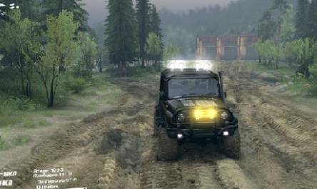 Мод УАЗ Хантер - машина с аддонами, их 5, и 2 комплекта сменяемых колёс. Звук двигателя звучит уазовский (стандартный).