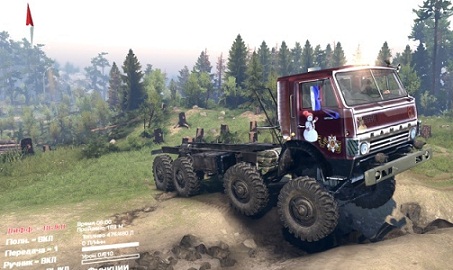 Мод КамАЗ Мустанг - грузовая машина с аддонами, их 7, а вот комплектов снимаемых колёс нет. Звук двигателя звучит камазовский (стандартный).