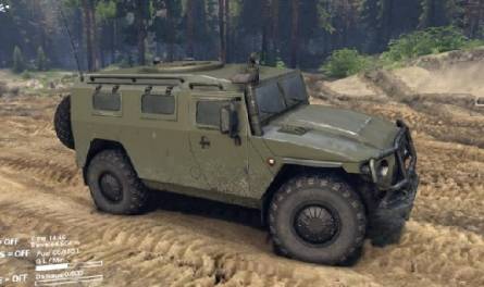Мод ГАЗ 2975 Тигр - машина с аддонами, их 3, и 2 комплекта сменяемых колёс. Звук двигателя звучит свой оригинальный.