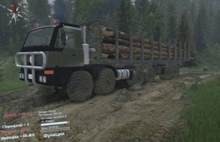 Мод TATRA Terrno 12x12 - грузовая машина с аддонами, их 2, но без комплект сменяемых колёс. Звук двигателя звучит свой. Возит длинные брёвна.