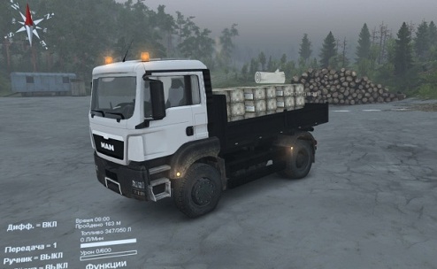 Мод MAN TGS - грузовая машина с аддонами, их 2, и 2 комплекта сменяемых колёс. Звук двигателя звучит свой камазовский. Ещё есть один свой груз.