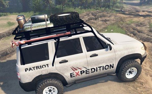 Мод УАЗ 3163 Патриот - машина с аддонами, их 4, и 2 комплекта сменяемых колёс. Звук двигателя звучит свой дефолтный.