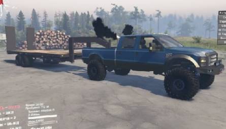 Мод Ford F350 2008 - машина с аддонами, их 7, и 2 комплекта сменяемых колёс. Звук двигателя звучит свой. Среди аддонов есть два прицепа.
