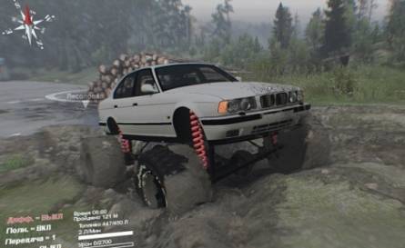 Мод BMW E34 bigfoot - машина на больших колёсах, без аддонов. Звук двигателя звучит свой.
