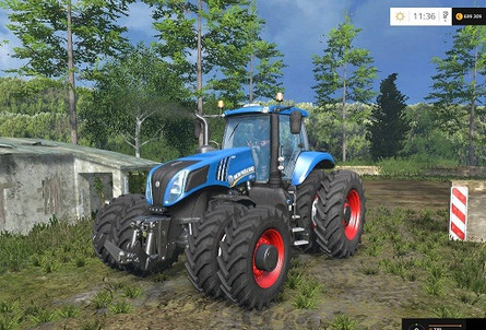 Трактор New Holland T8 оснащен новым и мощный двигателем 400 л.с. , обеспечит невероятную производительность. У модели рабочие зеркала, двери и окна, работает световая техника. Это трактор имеет раздвоенные колеса, что придает ему лучшую устойчивость. При движении стоит пыль столбом, оставляет следы на земле. Трактор загрязняется и его можно мыть.