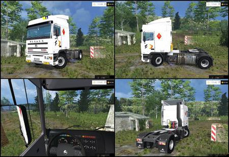 У грузовика работает световая техника, зеркала, спидометр и тахометр, можно открывать двери, капот. Для вас будет доступно два варианта прицепа: крытый тентом и обычный с высокими бортами, у которых можно открывать и заднюю и боковые стенки. Вместительность прицепа 15 тонн. Перевозит все стандартные культуры, доски, сыпучие материалы и другой груз. При движении анимация пыли из под колес, оставляет следы на земле. Грузовик можно мыть.