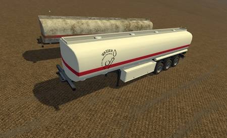 Перед вами большой прицеп - цистерна для ваше фермы. Прицеп сделан отлично, в светлых тонах и с хорошими текстурами. В нем можно перевозить жидкие грузы: воду, топливо, удобрение, объем цистерны составляет 40 000 литров, так же прицеп можно мыть.