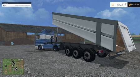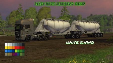 Новый прицеп для вашей фермы, этот прицеп подойдет для грузовика Scania R730 версии v 1.2. Прицеп двойной, первый большой с объемом 65 500 литров и маленький полуприцеп с объемом 45 500 литров. Прицепы цистерны, с работающей крышкой. Отлично подходят для транспортировки таких зерновых как: пшеница, рапс, кукуруза, ячмень, так же можно подвозить удобрения и даже известь. Вам будет доступна функция выбора цвета.